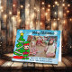 Agrega la foto de tu familia a esta Tarjeta de Navidad. Elfo de dibujos animados verde, rojo y azul y árbol de Navidad y foto de tu familia.