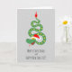 Tarjeta divertida y linda para las próximas vacaciones de invierno. ¡Son las dos de una! Puedes enviar esta tarjeta a tus amigos y seres queridos para desearles Feliz Navidad y Feliz Año Nuevo al mismo tiempo. Presenta un ilustracion personalizado de la serpiente usando el Sombrero de Santa y escribiendo en forma de Árbol de Navidad. ¿Por qué la serpiente? Porque el año 2025 será el año de la serpiente maderera en el ciclo zoológico lunar chino. No dudes en contactarme a través de Zazzle si necesitas ayuda para personalizar el texto de la tarjeta.