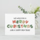 Tarjeta Feliz Navidad letras colgantes diseño simple