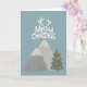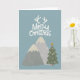 Un diseño minimalista de un árbol de Navidad con una celebración navideña en la montaña nevada.