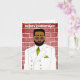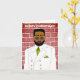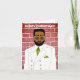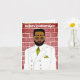 Esta tarjeta de Navidades presenta a un hombre afroamericano usando un traje blanco, corbata y gafas. Obtén esta tarjeta para tu ser querido o amigo a tiempo para Navidades.