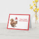 Dos párrafos de texto personalizable en el interior destacan esta divertida tarjeta de Navidad con un lindo squirrel con gorro de Santa.