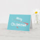 Tarjeta de saludo de Feliz Navidad de Pesca con Mosca. Caña de pescar con mosca, carrete y anzuelo con señuelo. Feliz Navidad en letras blancas. Fondo turquesa. Perfecto para pescadores con mosca, ya sea que pesquen truchas o lobinas durante esta temporada navideña.
