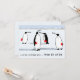 Cuatro pingüinos con corazones te desean Feliz Navidad desde su morada helada. Por la persona fresca en tu vida este invierno. Texto editable.