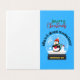 Un Navidad neva globo y pingüino en la nieve. Una pregunta graciosa que el pingüino pregunta, "¿por qué nieva todo el tiempo?" en el globo de nieve.