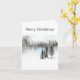 Esta es una impresión de mi propia tinta y acuarela de arte de árboles en niebla en una tarjeta de Navidades.