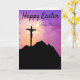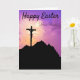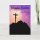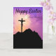 Feliz Pascua con Jesús en la Cruz y cita "Él ha resucitado"