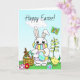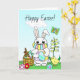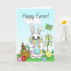 Tarjeta Feliz Pascua, conejo de Pascua con mascarilla