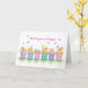 Tarjeta Feliz Pascua, conejos en macetas con flores