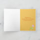 Una feliz tarjeta de felicitación de Pascua para una bisnieta decorada con un conejo blanco sosteniendo un ramo de flores de tulipán rosas paradas en un parche de flores silvestres ilustrado con acuarela en un cálido fondo naranja. Puede editar el texto para que se ajuste a sus necesidades.