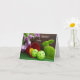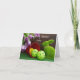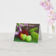 Adorable tarjeta postal del conejo de Pascua verde con pelotas de pickleball reales y tulipanes púrpuras. Texto personalizado en la parte frontal y en el interior.