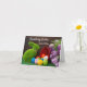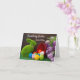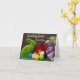 Tarjeta postal adorable del conejo de Pascua verde con pickleballs reales y tulipanes púrpura. Texto personalizado en la parte frontal y interior.
