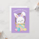 Personalizar esta linda tarjeta de conejo Happy Easter con tu propio texto personalizado con el nombre de tu hijo en escritura blanca. Este adorable conejo de conejo se sienta en una cesta de Pascua de bonito con una preciosa tarjeta morada para los niños.