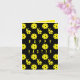 Tarjeta de Pascua amarilla y negra doblada con pelotas de pickleball y conejos con lunares. Texto personalizado en el interior.