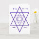 Creé este diseño elegante y muy moderno y en expansión de estrellas judías para una sensibilidad contemporánea. Para aquellos que quieran enviar algo diferente que destaquen entre otras cartas. Esta tarjeta es completamente personalizable: ¡Años, saludo y un espacio para tu foto familiar en el interior!