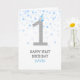 Tarjeta Feliz primer cumpleaños niño azul Confetti Chevron