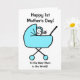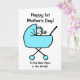 Mono dibujo de un niño saludando desde un cochecito azul. La tarjeta dice Feliz primer día de la madre a la mejor mamá del mundo. Personalice fácilmente esta tarjeta editando el texto de la plantilla en el frente y en el interior. Gracias por ver mis diseños!