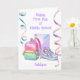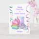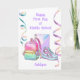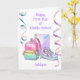 Una hermosa tarjeta feliz de primer día de secundaria para tu hija, nieta, sobrina y ahijada. La parte delantera cuenta con una mochila, un cuaderno y unos zapatos lindos, además de algunas gafas pastel en la parte delantera de este primer día de clase para ella. Podrás personalizar fácilmente la parte delantera con su nombre y el mensaje de la tarjeta interior también se puede personalizar si lo deseas. Esta es una manera maravillosa de apoyarla y animarla cuando empieza la escuela secundaria.