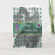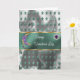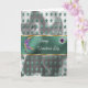 Una elegante tarjeta de color verde salvia y hoja de plata con una luna de joya morada con un amuleto de perla dorada amatista, collares de corazones de amatista dorada y estrellas brillantes de color verde salvia.