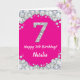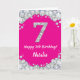 Feliz sétimo cumpleaños, tarjeta Purpurina Plata y Rosa Caliente con nombre personalizado. Para una mayor personalización, haga clic en el botón "Personalizar" y utilice nuestra herramienta de diseño para modificar esta plantilla.