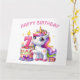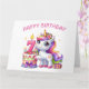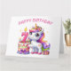 Feliz sétimo cumpleaños. Hoy tiene siete años. Cute unicornio en colores rosa y lila. Una torta de cumpleaños con una Vela Número Siete. Una adorable tarjeta de cumpleaños para niños. Esta tarjeta está en blanco dentro para su propio mensaje. También disponible como descarga digital para su transferencia a otros productos.