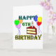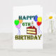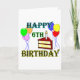 Tarjeta Feliz sexto cumpleaños con pasteles, globos y vela