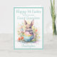 Una Cute Feliz Primer Día de Pascua para un bisnieto con un lindo Conejo sosteniendo un huevo de Pascua. Un bonito diseño dulce y bonito. Todo el texto se puede personalizar según sea necesario y, a continuación, personalizar con un nombre. El mensaje dentro del cual se lee actualmente "Te deseo una ostra especial de amor por Pascua Gran Abuela y Gran Abuelo"