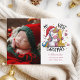 Tarjeta Festiva 1st Baby Christmas Photo Pink Gold Unicorn