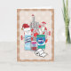 el gráfico frontal de esta tarjeta conmemora este año pasado con los elementos esenciales de supervivencia que rápidamente pasaron de "nunca tengo que pensarlo dos veces si esto está en stock" a "¿puedo hacerlo yo mismo en casa?" retratados son las toallitas desinfectantes genéricas, el spray desinfectante, el limpiador de manos y un rollo solitario de papel higiénico. El logo de 20 y el spray desinfectante llevan sombreros de santa rojos, y el desinfectante de mano está llevando una máscara roja para la cara, por supuesto. el grupo se sienta frente a un gigante patógeno de covid-19, que se asoma por la espalda, mientras que el fondo está lleno de una textura simulada de papel kraft impreso y copos de nieve blancos.