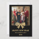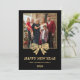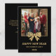 Tarjeta Festiva 2026 Black & Gold Bow Family New Year Photo