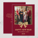 Ring in 2026 with this festive burgundy and gold bow family New Year photo holiday card, featuring a charming bow accent and space to showcase your favorite family photo. Perfect for sending warm wishes of happiness, health, and success in the new year while adding a touch of elegance to your holiday greetings. Ideal for family keepsakes, announcements, and memorable New Year mail.