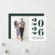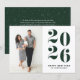 Tarjeta Festiva 2026 Dark Green Bold Typography New Year Photo