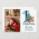 Tarjeta Festiva 2 Photo Blue Teddy Baby 1st Christmas