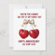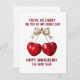 Celebrate your 4th anniversary with this charming fruit-themed greeting card! Featuring two cherries tied with a bow and the sweet message "You're the cherry on top of my every day," it’s perfect for the fruit year of marriage.