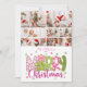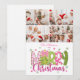 Tarjeta Festiva 7 Photo Pink Green Bow Tree Merry Christmas