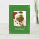Quién puede resistir a un lindo perro de cerdo vestido para las vacaciones con un Sombrero de Santa y corbata a rayas en un fondo verde con puntos de polka. ¡Desee Felices Fiestas a su caminante de perros estos Navidades!