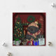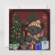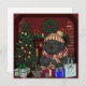 Perro de Terranova preciosa y cuidadosamente dibujado y coloreado como abuela/abuelo, disfrutando del calor del fuego y las luces del árbol de Navidad, preparando sus regalos para la mañana.
