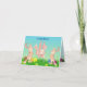 ¡Gran tarjeta para el nieto! En la parte delantera, los conejillos juegan en un parche de huevo de Pascua. Dentro de ellos se ha iniciado un partido de béisbol. Igual que los niños, ¿verdad? Además de los huevos de Pascua, hay una pelota de baloncesto, una pelota de fútbol, una pelota de base y un murciélago. En el frente tienes la opción de personalizar "Nieto". Usted puede elegir irse como está o cambiarlo a su nombre o el nombre de su mascota para su nieto.