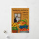 Bienvenidos amigos y familia con esta rústica tarjeta plana de Acción de Gracias del Suroeste. En el umbral de una ventana de estilo Santa Fe con cortinas de encaje, un gato de esmoqueta blanco y negro se sienta. Una multitud de calabazas y calabazas se sientan en una mesa rústica pintada de azul, y un abrevadero lleno de manzanas y una olla de girasoles se sientan delante de la mesa. El sentimiento "Acción de Gracias es un momento para la familia, amigos, gratitud y amor. El texto de la parte posterior se puede personalizar con su propio mensaje.