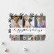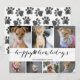 Difunde amor esta temporada navideña con fotos de tu bebé peludo con tarjeta elegante y chic con collage de 7 fotos, caligrafía que dice "felices fiestas" y una huella de pata de acuarela. Viene con un diseño de patrón de huella de pata coincidente en la parte posterior.