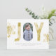 El J y la Y en la palabra ALEGRÍA es una falsa acuarela del oro y el O exhibe su foto. La parte posterior de la tarjeta es un modelo del polkadot del oro. Elementos usados en este ©StudioDenmark del diseño + ©DelightClipart. Estudios de Storytree del © de la fotografía, Stanford, CA