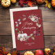 Una hermosa tarjeta de felicitación de Acción de Gracias con flores de acuarela. Este diseño elegante y hermoso presenta una fuente de letra, rosas, corona y calabazas. Personalice con sus propios detalles. Artículos coincidentes disponibles en nuestra tienda. #zazzlemade