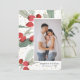 Difunde la alegría navideña con esta tarjeta de fiestas festivas que incluye tus fotos favoritas rodeadas de bayas de acuarela, hojas verdes y lunares de purpurina dorada falsa. Cambia el saludo de Felices Fiestas a Feliz Año Nuevo, Feliz Navidad, etc. La parte trasera incluye dos fotos. Una tarjeta muy divertida y única que seguramente difundirá alegría navideña.