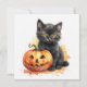 Tarjeta Festiva Acuarela de Halloween Gatito negro y calabaza
