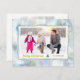 Esta tarjeta de Navidades fotográficos plana presenta un fondo de agua suave en azul, verde, violeta y dorado. Un marco fotográfico horizontal, en la parte delantera, está bordeado por un borde ondulado dibujado a mano. El reverso ofrece un segundo fotograma horizontal y texto personalizado para un mensaje y nombres.