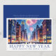 Tarjeta personalizada de fuegos artificiales de Nueva York para Año Nuevo en acuarela