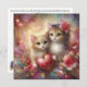 Tarjeta Festiva Acuarela Gatitos Flores Corazón San Valentín