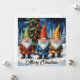 Comparte la alegría navideña con este animado diseño que presenta a tres divertidos gnomos vestidos con trajes brillantes de rojo, verde y dorado. De pie orgullosamente debajo de un árbol de Navidad decorado, traen un espíritu festivo alegre y colorido a una escena invernal escandinava nevada.