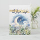 Tarjeta Festiva Acuarela Luna Dorada Eid Mubarak Escritura Árabe