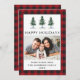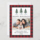 Watercolor Pine Trees Familia Foto Tarjeta de vacaciones feliz moderna - Tapado de búfalo rojo